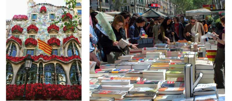 In Catalonia on the 23rd of April, the tradition is that sweethearts exchange roses and books, nowadays even loved ones or colleagues can do it. Men gave women roses, and women gave men books. In Barcelona this day the streets are full of musicians, flowers, stalls selling books and roses, as well as literary activities such as workshops and recitals. It is also easy to enjoy the ‘sardanas’ (traditional dances) and the houses covered by roses so it is the perfect day for walking around the city and enjoying the atmosphere of the festival.