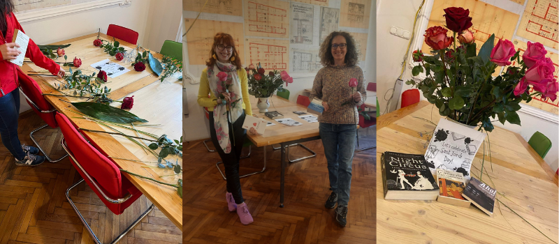 In Collabor we celebrated this a bit differently but we kept the base of the tradition, we used roses and books. We decorated the office with roses and all the women colleagues and clients got a surprise rose. Besides that, instead of giving books, we organized a book-swapping day, which can follow later even with a day when we can have a discussion about the experiences with the books, and about different traditions.